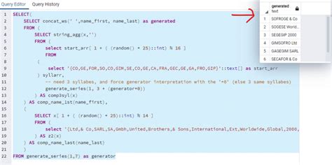Postgres Generate Random String. Web create function generate_bar () returns text language sql as $$ select string_agg (substring. Insert into person (id, name,., birth_date,.