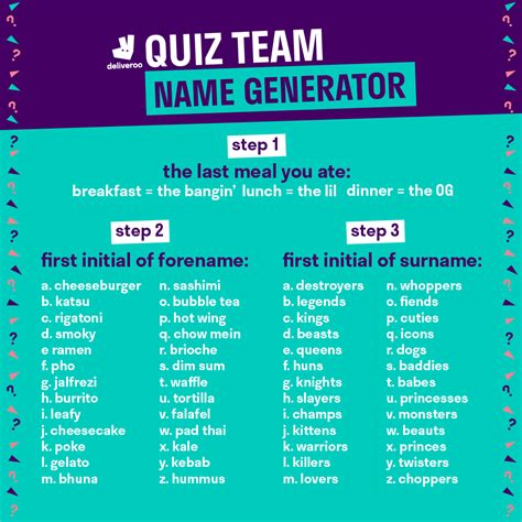 Web enter the keyword in the box and then hit the generate button. Web team name generator find the best team name for your sports team, club, or organization with our team name. Web the quiz team name generator is an online tool designed to generate creative and unique name ideas for quiz teams, gaming. You’ll then see two dozen potential team names that incorporate. Web our trivia team name generator has got you covered, whether you’re at a bar, in a quiz bowl, or playing online.