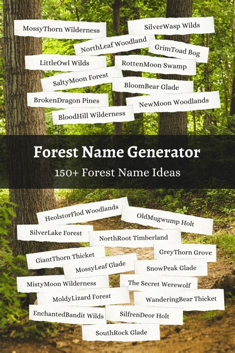 Web generate names loda forest biala forest killykeen forest escanaba forest almindingen forest akurgerthi. Web with our extensive selection of forest names, you’ll be able to find the perfect name for any setting or theme. Web this name generator will generate 10 random names fit for forests and other similar geological areas, like coverts, groves and.