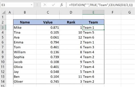 Randomly Assign Names To Groups In Excel Using RAND, RANK, ROUNDUP