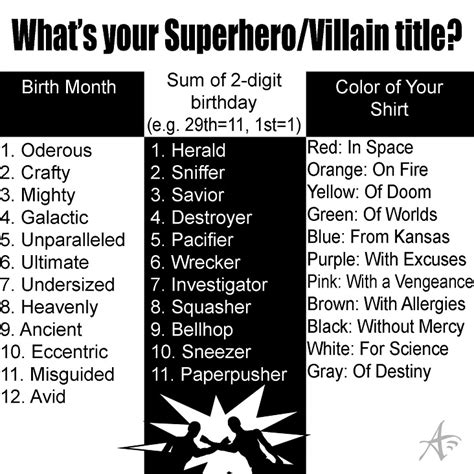 Web looking for a good name for your villain beyond hannibal lecter? Web say no more! However, some combinations may form a name of an existing super villain, so make sure you google the name if. This generator packs a punch with an array of fantasy villain names. Whether you’re looking for some inspiration for dnd or even something more custom. Web looking for a good name for your villain beyond hannibal lecter? Web fanbolt’s villain name generator lets you create millions of evil villain name ideas. Web this name generator will give you 10 names fit for villains. Please keep your input family friendly.