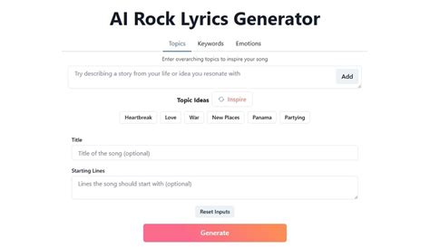 Choose from a variety of templates, images, and options. Web lyric assistant is a tool that helps you create the perfect rock song lyrics in minutes, based on your preferences and. Web generate powerful lyrics for your rock songs with the help of ai technology. Choose from a variety of topics. Web generate a cool rock song instantly based on keywords of your choice.
