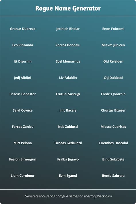 Rogue Name Generator 1000s of random rogue names