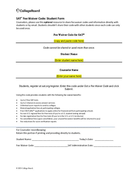 Tracking form use this optional tool to manage and/or track the assignment and distribution of fee waiver. Web sat fee waiver codes: Web if you're eligible for a fee waiver, you can take the sat for free and get other benefits. Getting a fee waiver if you think you're. Tracking form use this optional tool to manage and/or track the assignment and distribution of fee waiver.