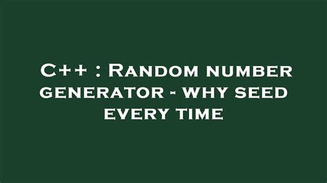 Seed Random Number Generator C++. If rand()is used before any calls to. For every different seed value used.