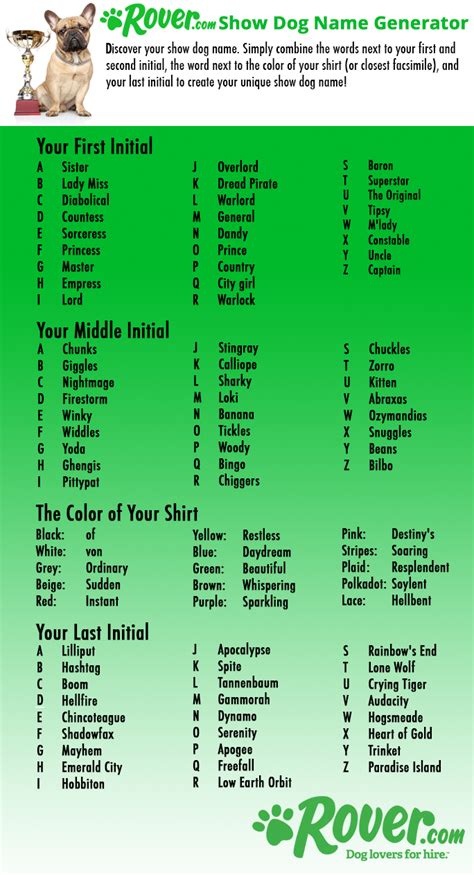 Show Dog Name Generator. Do you prefer cute puppy. First, pick the gender and style of names that you’d like.
