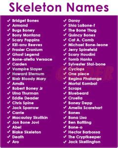 Skeleton Names Generator. Choose from over 2000 names. Web use the skeleton name generator to create a unique and exciting name for your friend, character, or project.