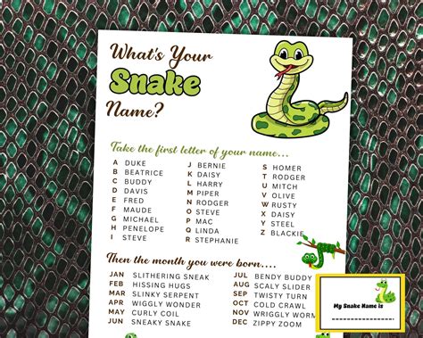 Web wow pet name generator, reptiles. 100's of names are available, you're bound to find one you like. Are you struggling to come up with a fun and creative name for. Web the snake name generator can generate thousands of ideas for your project, so feel free to keep clicking and at the end use the handy copy feature to export your snake. Web a snake name generator would come in handy for a variety of reasons. For many, it can be challenging to find the perfect name for their pet snake that reflects its unique. The 'other names' button will give you names mainly. We gathered an extensive list of over 2,000 of. Web unfortunately picking the perfect snake name can be a difficult task so we have decided to build a snake name generator.