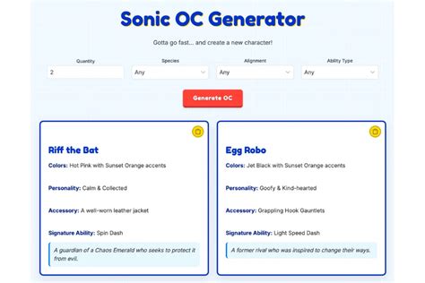 Sonic Oc Generator. 'hair' = actual hair, quills, head shape, fins, tufts of fur, etc faq and updates at bottom ———————— master data. Your generated oc is a short.