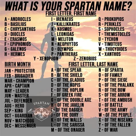 Spartan Name Generator. Web there's thousands of spartan names in this spartan name generator, so you won't need to be worried that we'll run out anytime soon. Below is a list of 100+ spartan names, including male, female, and warrior names: