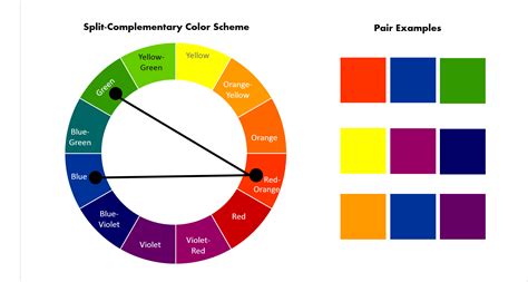 Web split complements use a color and the two adjacent tertiary colors of its complement. Triadic color schemes use three evenly.