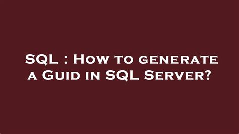 Sql Generate Guid. The following example creates the cust table with a uniqueidentifier data type, and uses newid to fill the table with a default value. By using the newid or newsequentialid functions.