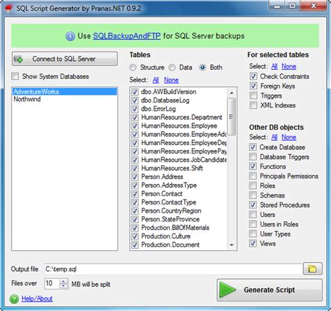 Sql Script Generator. It generates a proper sql select query code by entering table name, column. Web apexsql script is a tool that can script sql server databases into scripts, folders, packages and source control projects.