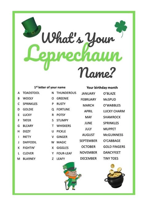Your Lucky Leprechaun Name Leprechaun names, St patrick day