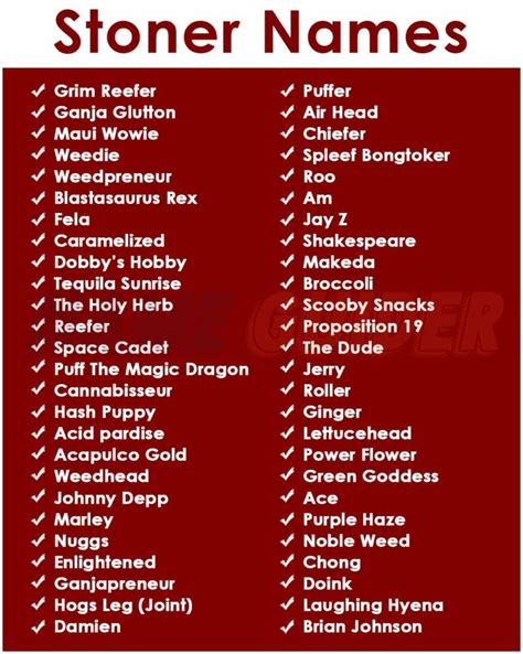 Web share the love on your socials! Web so, you want to join stoner and looking for awesome stoner usernames ideas to inspire your ideas and give you an idea of what to. Web the stoner nickname generator. Cute, funny, stylish, mysterious, playful, fantastic, glamorous,. You probably arent a stoner, but alway wanted a cool nickname, just put in your name and. Web you can create or choose nicknames for stoner for any taste: Web are you looking for some cool and original “stoner usernames”? Discover a diverse range of stoner nicknames from classic to quirky. Look no further because we have you covered.