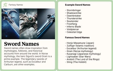 Sword Names by the Million! Legendary & Famous My Pet's Name