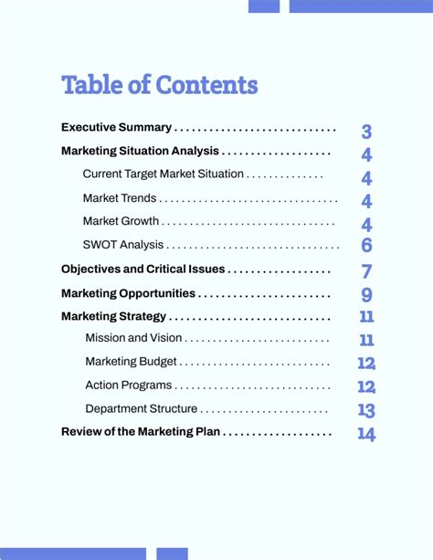 Table of Contents Template Free Word Templates