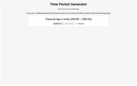 Time Period Generator. Web this name generator will give you 10 random names for historical periods of time, similar to names like 'the stone age', 'the middle. Web generate random calendar dates from a range of dates and a total number of dates.