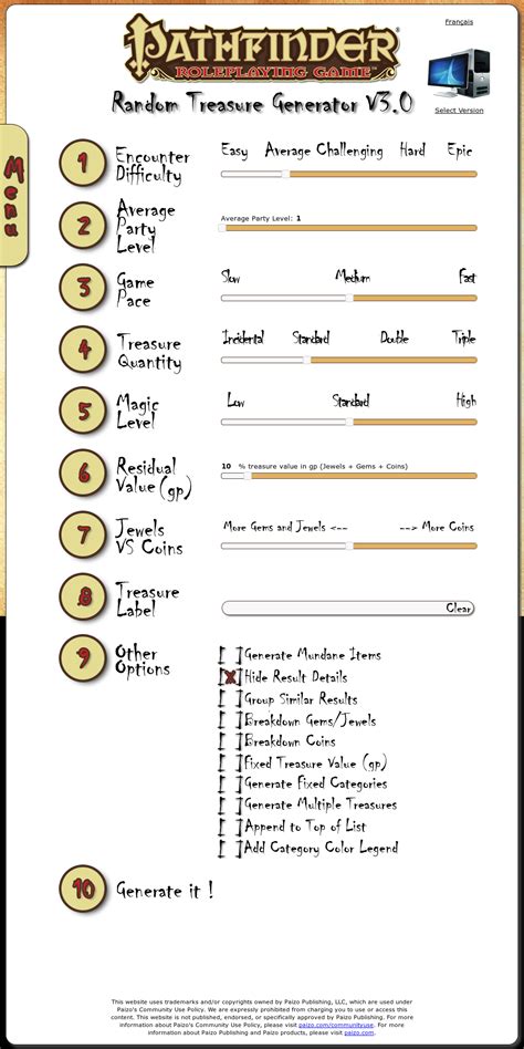 Treasure Generator Pathfinder. 4 encounters provides roughly a levels worth of loot treasure format is item, value (in. Go ahead and focus on the plot while you quickly create some monsters or traps on.
