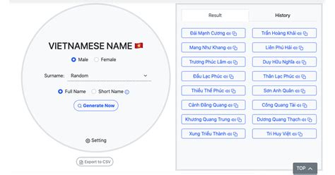 Vietnamese Name Generator. You can easily find one that you like. Over 100,000 vietnamese names can be generated from this vietnamese name generator.