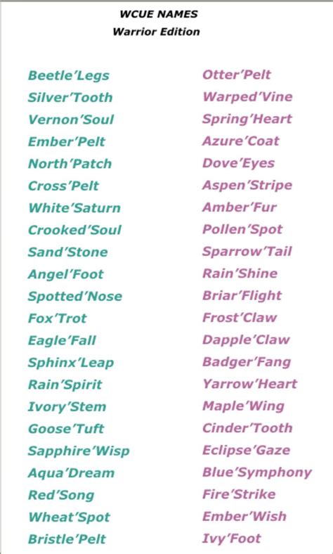 Warrior Cats Name Generator 1,000+ Warrior Cat Names Imagine Forest