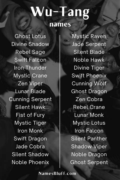 Wu Tang Name Generator. Choose from thousands of possibilities inspired by the hip hop group. Slam the “generate name” button and watch the.